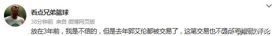 有球迷点评说道:放在3年前,我是不信的,但是去年郭艾伦都被交易了,这笔交易也不是不可能了 。