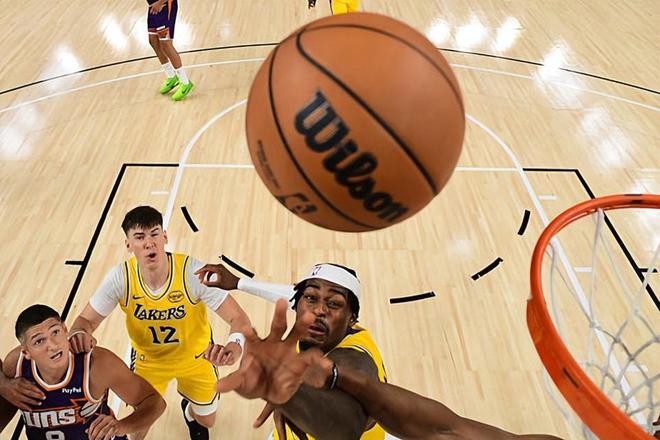 本场比赛中,湖人的先发锋线大将贾里德-范德比尔特(Jarred Vanderbilt)的表现令人非常失望。范德比尔特全场出场20分57秒,投篮4中-,三分线外3中0,罚球2中1,仅靠罚球得到了1分外加2篮板1抢断1盖帽的数据,还有2次犯规,正负值为-11。范德比尔特在防守端的表现还是不错的,他的个人防守能力还是能够保持在一个不错的水平,他的单防能力还是相当不错的,他的防守侵略性和补防能力都是值得肯定的,他也证明了自己是一名有着可靠的防守者。然而问题就在于,范德比尔特在进攻端的表现依然是惨不忍睹的水平,他得到了一些外线投篮机会,但是在外线投篮方面的稳定性也依然是严重不足的水平,他也依然没有将自己在这方面的实力发挥出来,看起来他依然妥妥的是一名寒冰射手。